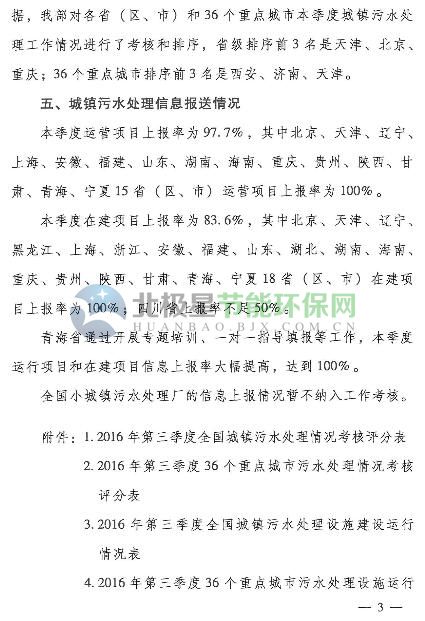 北极星节能环保网讯:北极星节能环保网获悉,2016年12月住房城乡建设部根据“全国城镇污水处理项目信息系统”(以下简称“信息系统”)的数据统计,下发了《住房城乡建设部关于全国城镇污水处理设施2016年第三季度建设和运行情况的通报》(建城函〔2016〕243号)。